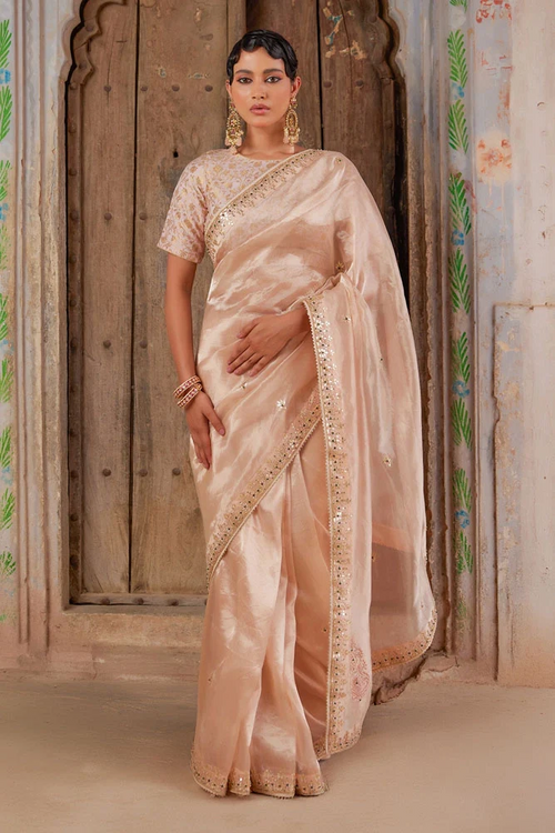 Pink Tissue Crush Palazzo Suit with Embroidery & Sequins Pink Tissue Crush Palazzo Suit with Embroidery & Sequins